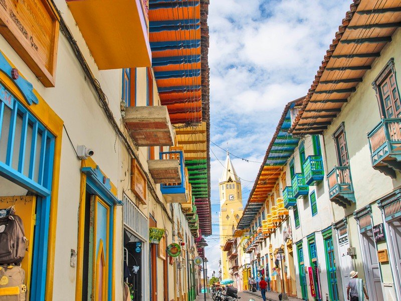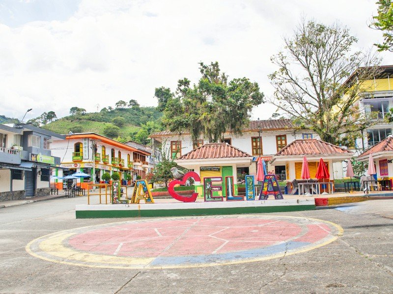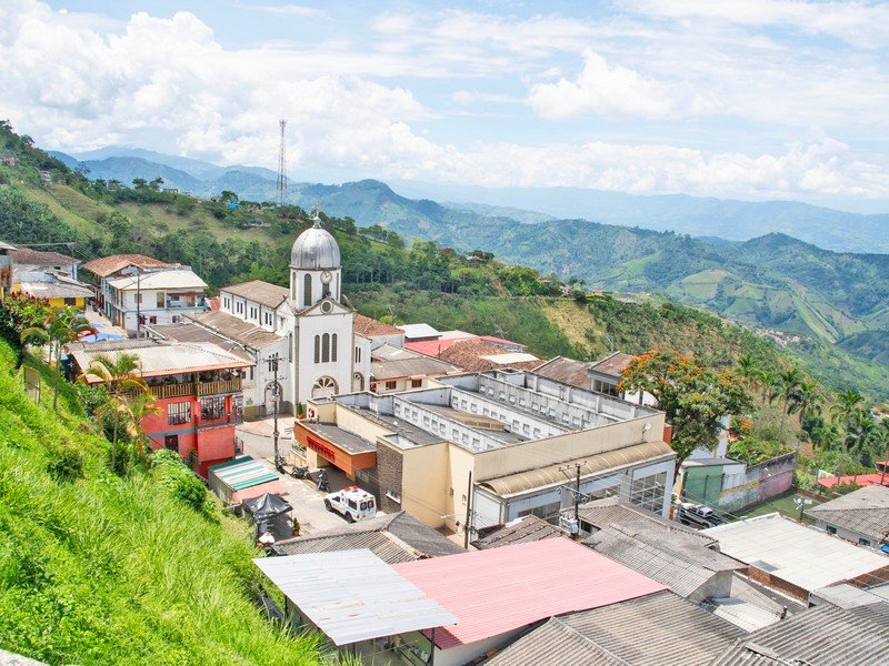 Asentamientos poblados incrustados en las montañas de los Andes, construidos por andariegos antioqueños que llegaron buscando tierras para cultivar café, bosques para aserrar y construir sus casas de madera, tapia y bahareque, con patios centrales y grandes corredores, de pintorescos frentes de fuertes tonos…